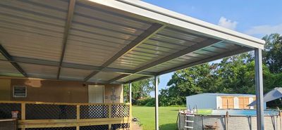 Our steel awnings and carports provide dependable protection for vehicles, equipment, and outdoor spaces. Built with strong steel framing and durable metal roofing, these structures protect against sun, rain, and harsh weather while adding functionality and value to your property.